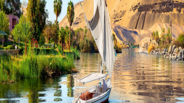 Balade en felouque (bateau à voile typique du Nil) pour une virée autour de l’île Éléphantine, visite du Jardin de Kitchener. L’île des Fleurs est un tout petit îlot entre Éléphantine et la rive gauche. Cela sera l’occasion d’une superbe balade en fin d’après-midi.