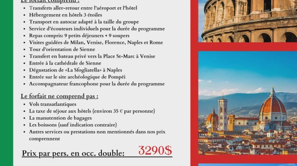 *** Vol direct départ le 2 mai retour 13 mai 1150$ par personne bagage inclus